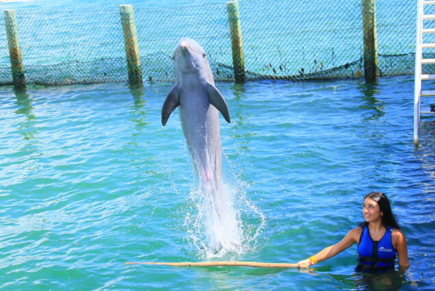 Uno de nuestros simpáticos delfines te dará la bienvenida con sus amigables aletas, y en los 40 minutos que siguen vivirás momentos que no olvidarás: el mágico beso de delfín, juegos interactivos y una introducción guiada a la anatomía y vida de estos increíbles mamíferos marinos, de la mano de nuestro equipo de entrenadores.