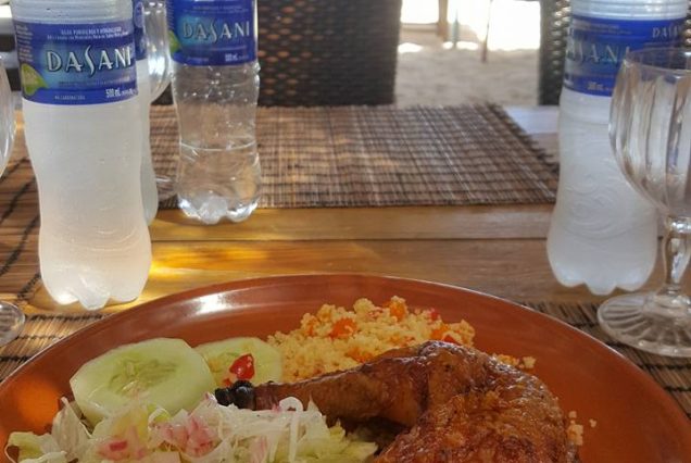 • Un desayuno ligero en el restaurante junto al mar incluye pechuga de pollo, arroz y ensalada antes de regresar a la relajante cubierta superior del Spa en Bávaro.