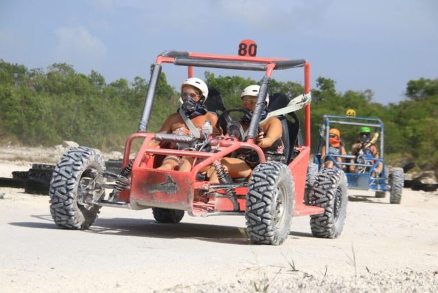 Disfruta de nuestro tour de aventura en buggies por Punta Cana, sin caminos públicos, y acelera en la mina abandonada, pista todoterreno. Vuela alto en nuestra tirolesa de Punta Cana, un circuito de 7 líneas, que incluye el Himalayan Bridge y el emocionante aterrizaje en el agua Mega Splash Cable. Descubra el parque en un recorrido a caballo por Punta Cana y admire los hermosos senderos y maravillas naturales. Nade y refrésquese en la piscina con cascada. ¡100% diversión para todos!