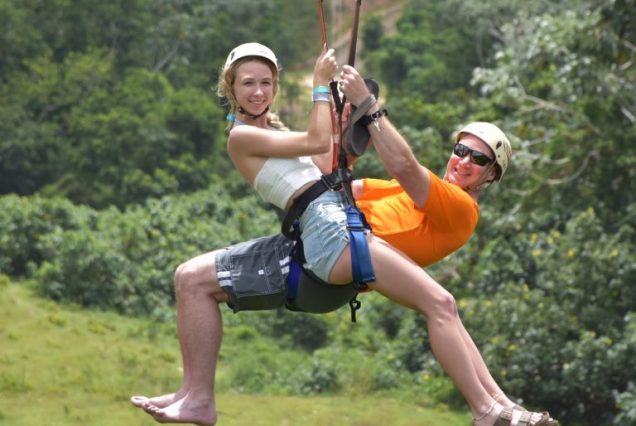 ¿Cómo es tu día en La Hacienda Park? ¡Recuerda! Es posible que el orden de las actividades varíe, ya que las ajustamos según la disponibilidad y la dinámica de llegada de nuestros visitantes. Iniciamos con una recogida en tu hotel para dirigirnos al parque. No olvides llevar todo lo que necesitas para garantizar tu comodidad. Al llegar al parque, haces el Check-in donde recibes tu equipo de seguridad y una manilla para identificar tu grupo. Durante tu aventura, estarás acompañado por un guía que habla tu idioma y un fotógrafo. Empezamos la aventura con los buggies, recorriendo las montañas de Anamuya; enfrentamos subidas empinadas y zonas embarradas, asegurando diversión en un circuito cerrado y seguro. A bordo de los buggies, llegamos al Safari Cultural. Allí, disfrutamos de un recorrido por el pueblo campesino, observamos coloridas casas típicas, animales de granja y, al final, degustamos Mamajuana, café y chocolate recién hechos. Luego, nos adentramos en un paseo a caballo por las montañas de Anamuya acompañados de nuestros guías expertos. No importa si no tienes experiencia, nuestros caballos criollos son dóciles y fáciles de manejar. En un camión militar, realizamos un viaje a través de la selva hasta el Río Anamuya, donde nos damos un refrescante baño en sus aguas cristalinas y disfrutamos de la tranquilidad del paisaje. Después de refrescarnos en el río, subimos a la Telesilla, apreciando la vista panorámica al ascender de una altitud de 140 metros a 450 metros. Este recorrido, con una longitud de 800 metros, nos ubica en el punto inicial de la tirolesa, donde la adrenalina se dispara al deslizarnos a 70 km/h por más de 2,4 kilómetros a través de la selva de Anamuya. Al concluir la tirolesa, llega el momento de enfrentar el Quick Jump. Desde una plataforma a 20 metros de altura, experimentamos una emocionante caída libre controlada. Para finalizar, nos deleitamos con un delicioso almuerzo tipo buffet con platos típicos dominicanos como la crema de auyama, sancocho, arroz con leche, y más. Con el corazón repleto de emociones nos despedimos de La Hacienda Park y comenzamos el viaje de regreso a Punta Cana.